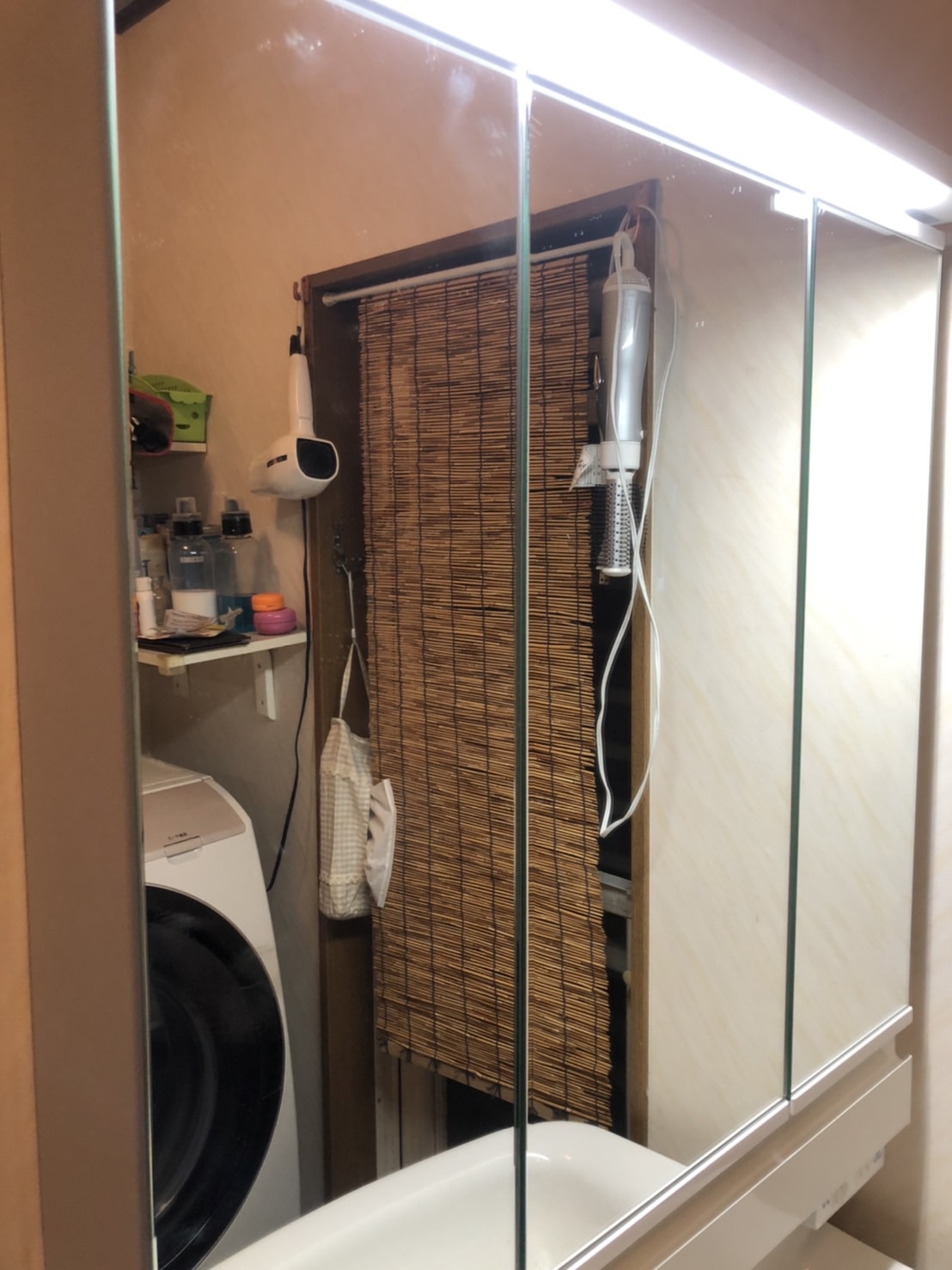 ミラーが三面になり、中に収納ができるため、見た目もスッキリしました。